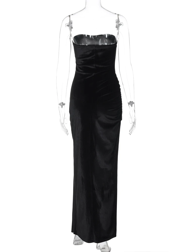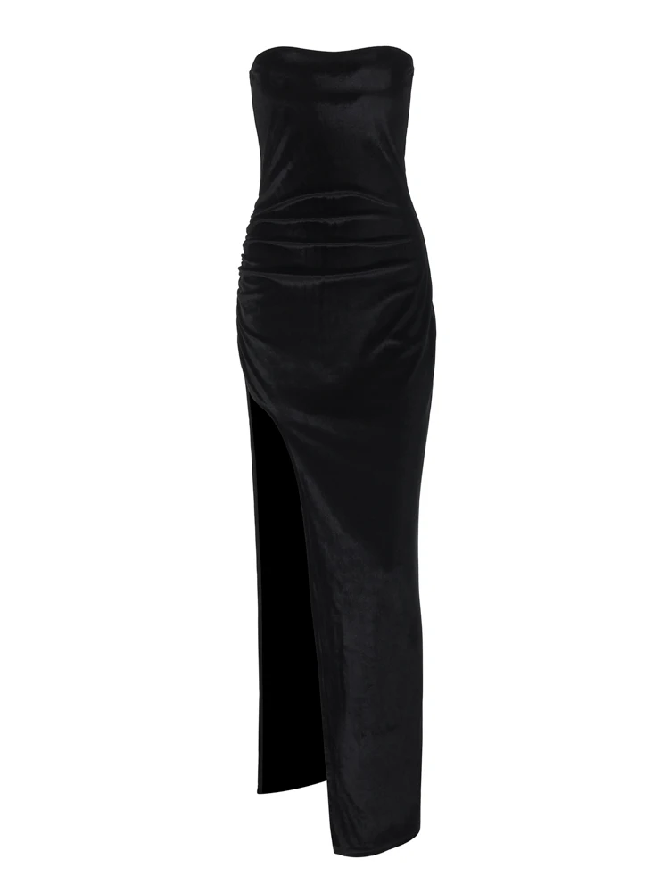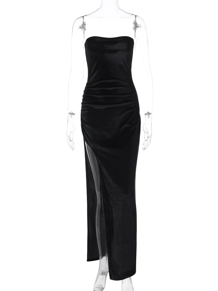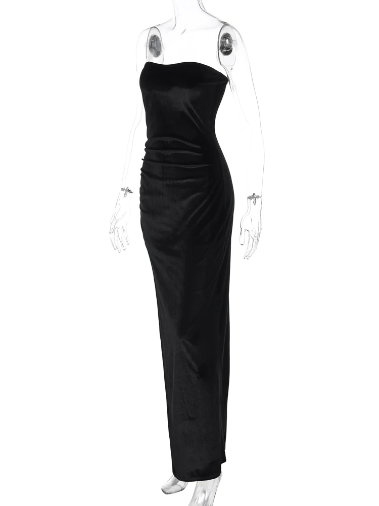 Dulzura Velvet Strapless Tube Dress Sleeveless Solid Split Maxi Dresses Women'S Sexy Elegant Clothes Party Clubwear Vacation Y2K